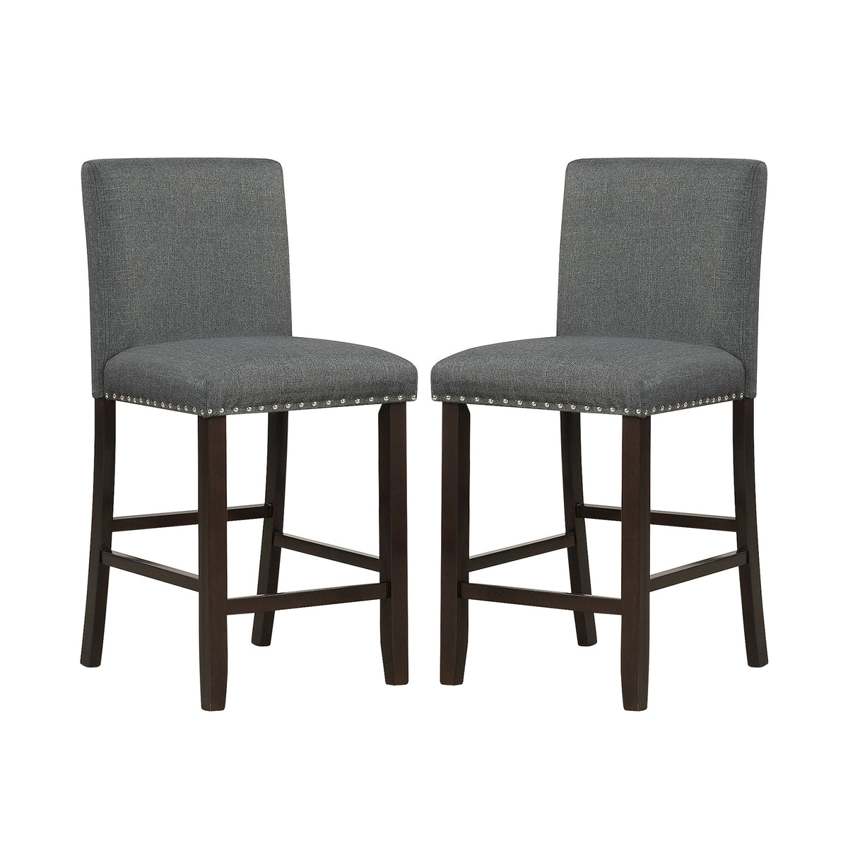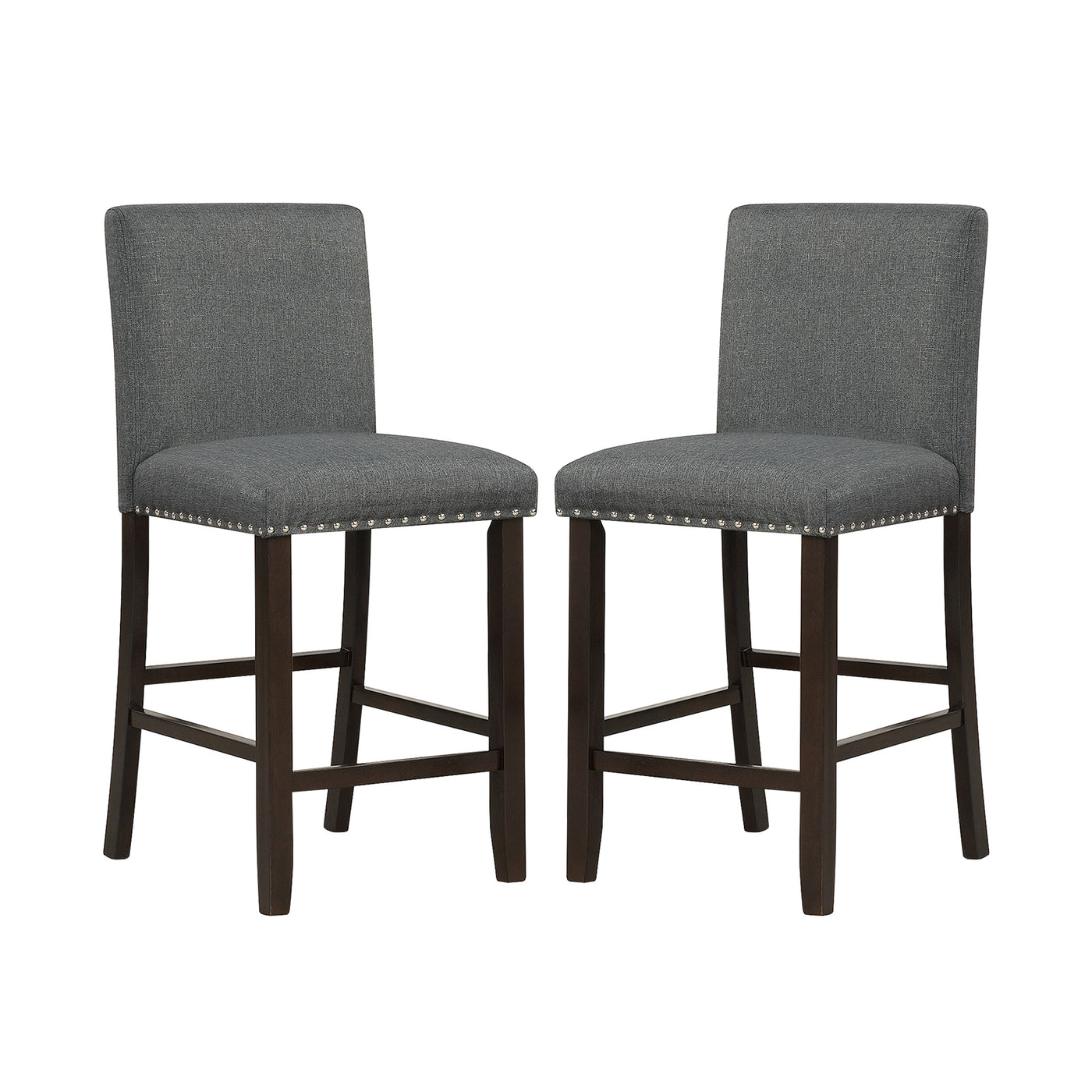Colour: Black/Grey Material: PVC leather, plywood, sponge Overall dimension: 48 x 50.5 x 99 cm(L x W x H) Seat height: 64.5 cm (H) Net weight: 13 kg Weight capacity of each chair: 110 kg Box Qty:1(May vary by batch)Package includes: 2 x Bar stool 1 x Instruction Manual