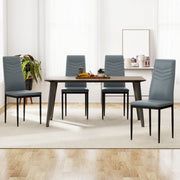 Colour: Black, Grey Material: Metal, sponge, PVC material Overall dimension: 40.5cm L √ó 52cm W √ó 99cm H Net weight of each chair: 4 kgs Weight capacity of each chair: 150 kgs Box Qty:1(May vary by batch) Package includes: 4 x Dining chair 1 x Instruction Manual