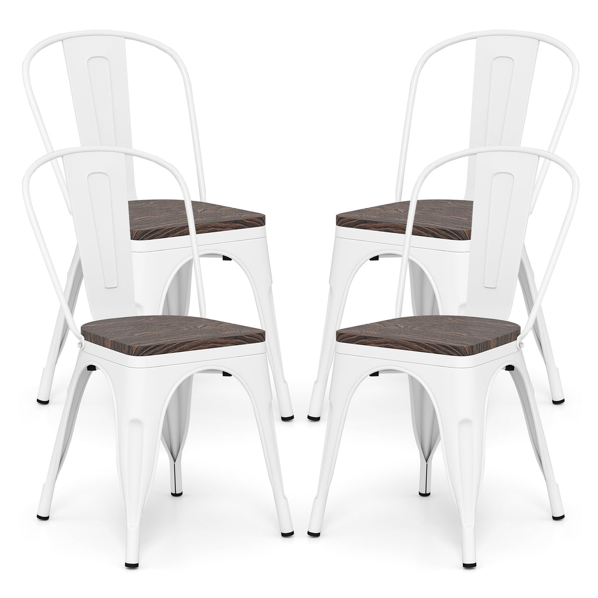 Metal Dining Chairs Set of 4 Stackable Kitchen Side Chairs-White