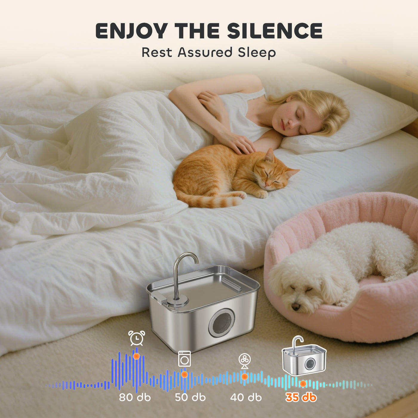 PawHut 3.2L Cat Water Fountain for Drinking, Cat Fountain Stainless Steel with Visible Water-Level Window, Ultra-Silent Pump - Silver