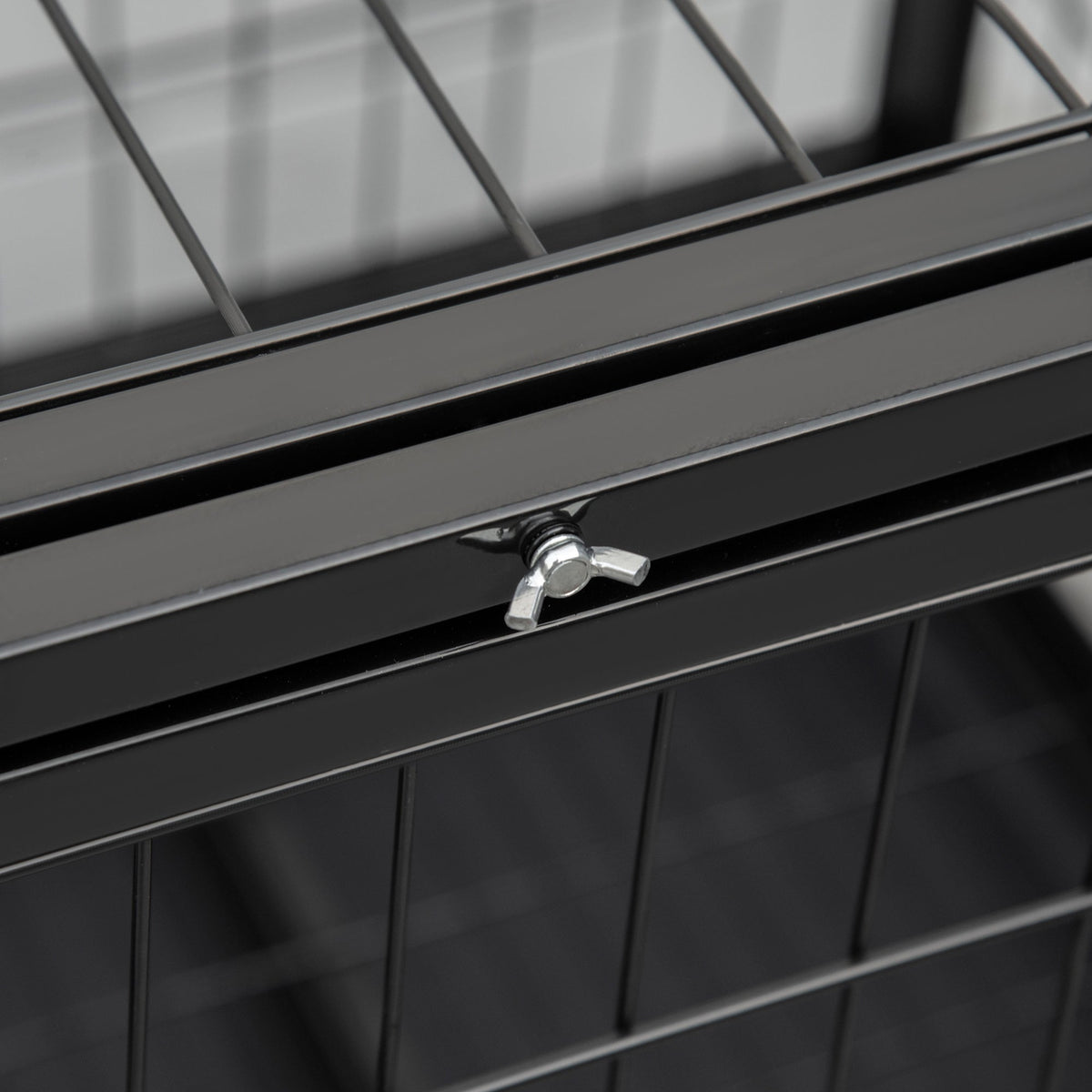 Ideal for both puppies and adult dogs, the PawHut dog crate offers exceptional convenience. Use the metal dog crate for anything from potty training or house training to regulate house rules and boundaries-or simply as a safe, secure place for your pet to rest and relax. The steel cage includes strong welds at stress points and strong latch on the door. The durable powder coated finish is also rust-resistant. Goal is to keep your pets happy and healthy, while proving accessibility and easy cleaning for you.
