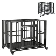 PawHut 43" Heavy Duty Dog Crate, Foldable Dog Cage, with Openable Top, Locks, Removable Tray, Wheels - Black - Black
