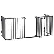 PawHut 5 Panels Pet Playpen Metal Fence w/ Walk Through Door - Black - Black
