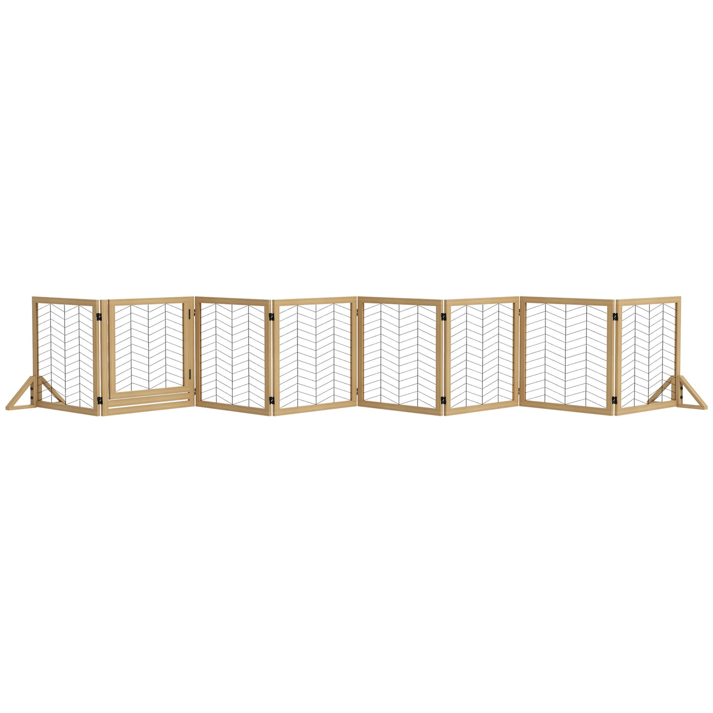 PawHut 8 Panels Foldable Pet Gate with Support Feet, for House, Doorway, Stairs, Small and Medium Dogs - Natural Wood