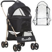 PawHut Detachable Pet Stroller with Rain Cover, 3 In 1 Cat Dog Pushchair, Foldable Carrying Bag w/ Universal Wheels, Brake, Canopy, Basket, Storage Bag for Small and Tiny Dogs - Black - Black