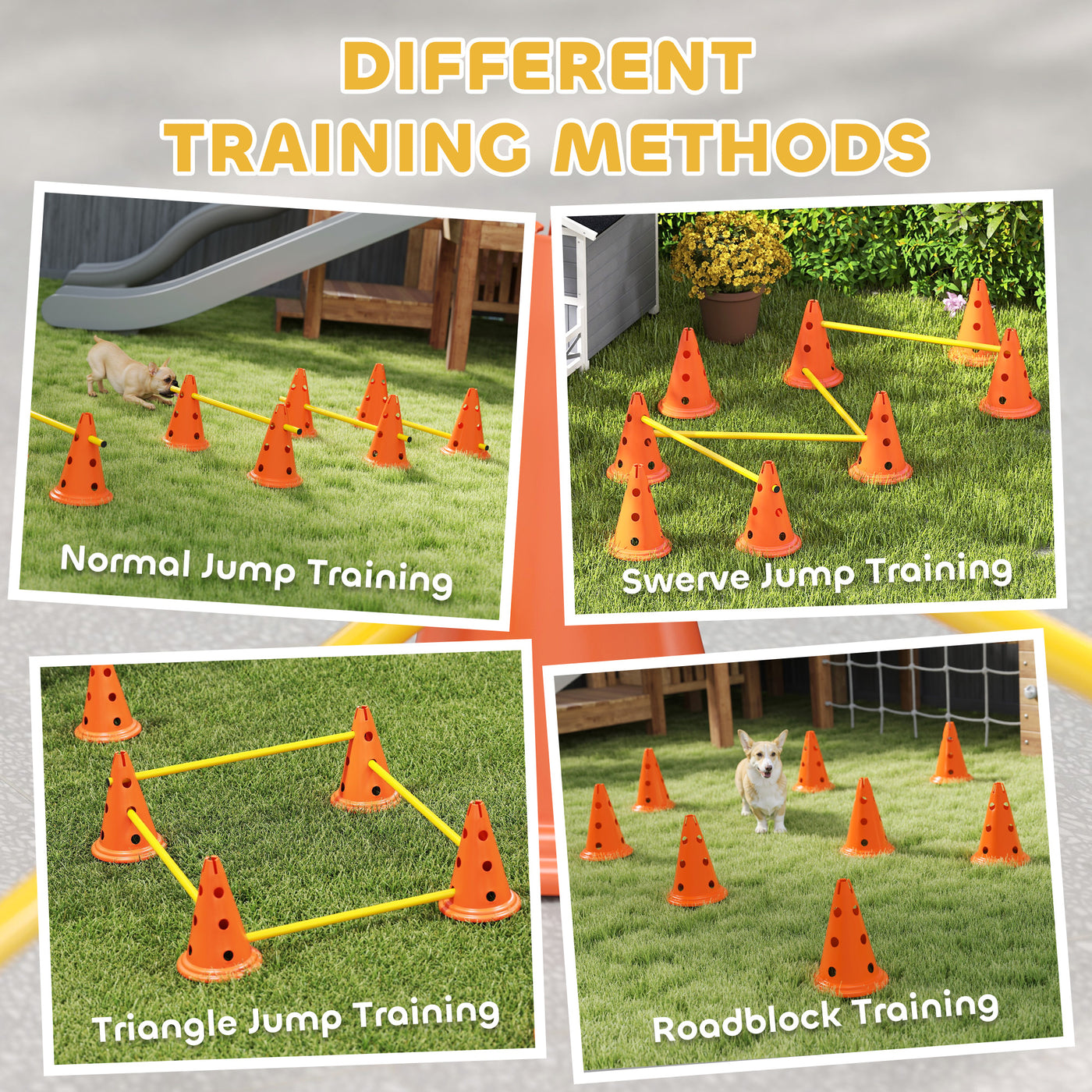 PawHut Dog Agility Equipment Set of Eight Cones, Eight Poles w/ Carry Bag, Four-Piece Adjustable Height Jumping Obstacles - Orange