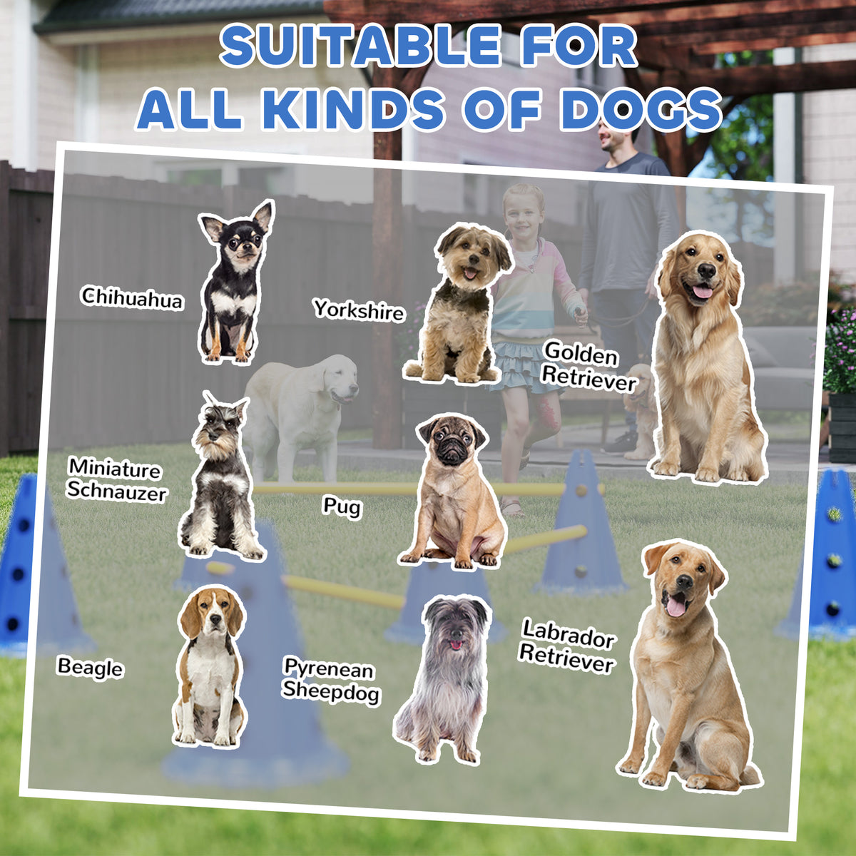PawHut Dog Agility Equipment Set of Six Cones, Six Poles with Carry Bag, Three-Piece Adjustable Height Jumping Obstacles, Blue - Blue