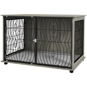 PawHut Dog Crate Furniture End Table w/ Plush Washable Cushion, Lockable Door, for Extra Large Dogs - Grey