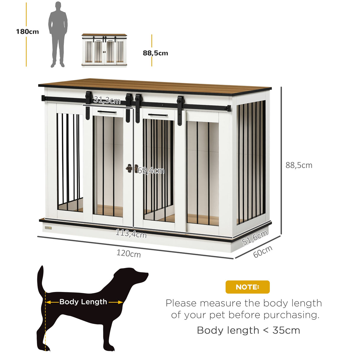 Keep pets safe and secure, whilst bringing style into the home – this PawHut dog cage table does it all. The divider lets you create two small spaces, suitable for two small dogs. Or you can remove the divider and have a spacious room, suitable for a larger dog. Its rustic farmhouse design suits any décor, whilst the large top is for displaying favourite pieces for more decoration. Double sliding doors for easy access, it has latches to keep pets safely inside when needed.