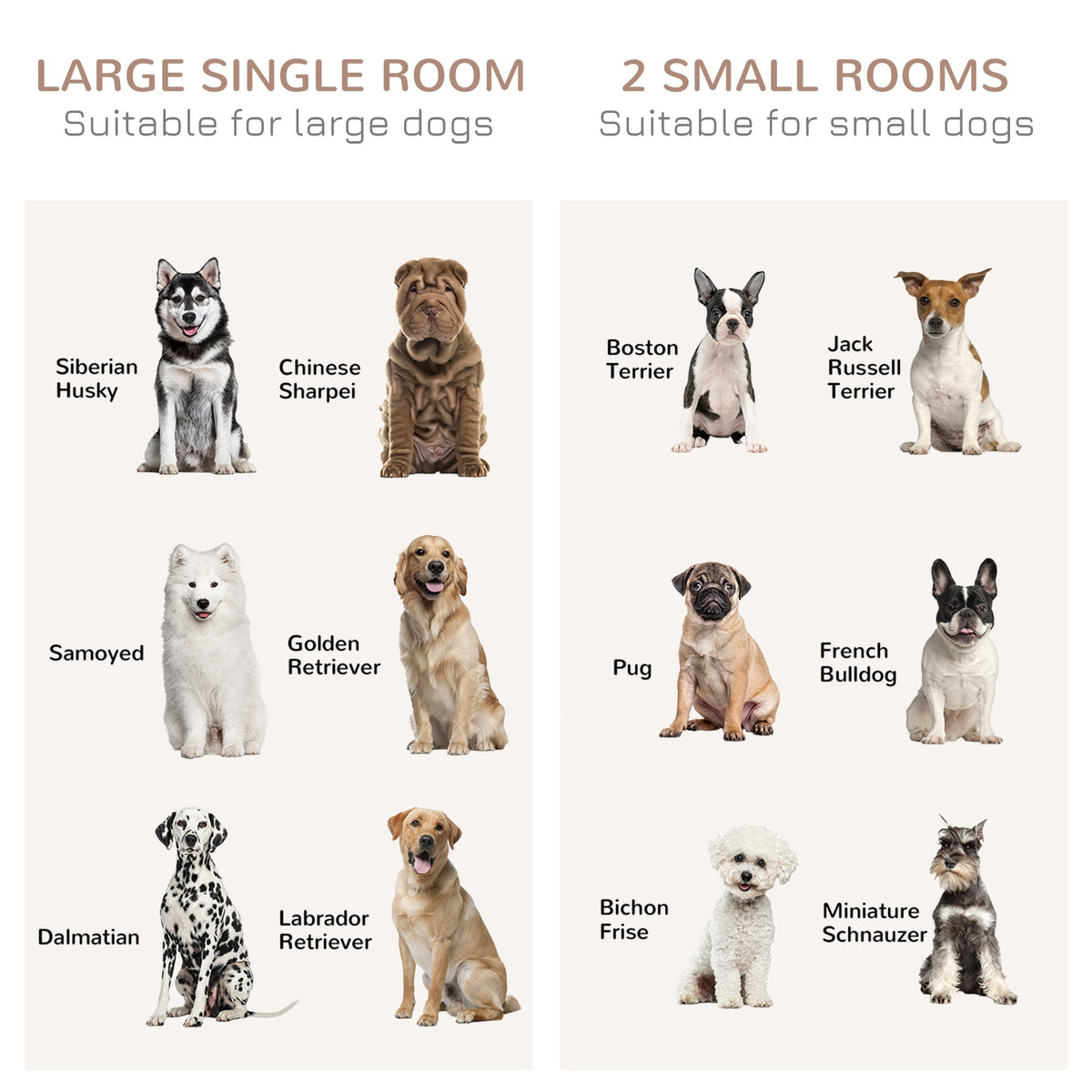Keep pets safe and secure, whilst bringing style into the home – this PawHut dog cage table does it all. The divider lets you create two small spaces, suitable for two small dogs. Or you can remove the divider and have a spacious room, suitable for a larger dog. Its rustic farmhouse design suits any décor, whilst the large top is for displaying favourite pieces for more decoration. Double sliding doors for easy access, it has latches to keep pets safely inside when needed.