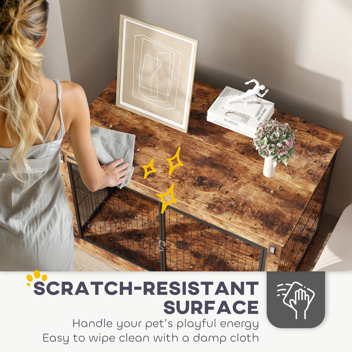 PawHut Dog Crate Furniture with Openable Top, Two Doors, for Large Dogs, Rustic Brown - Rustic Brown