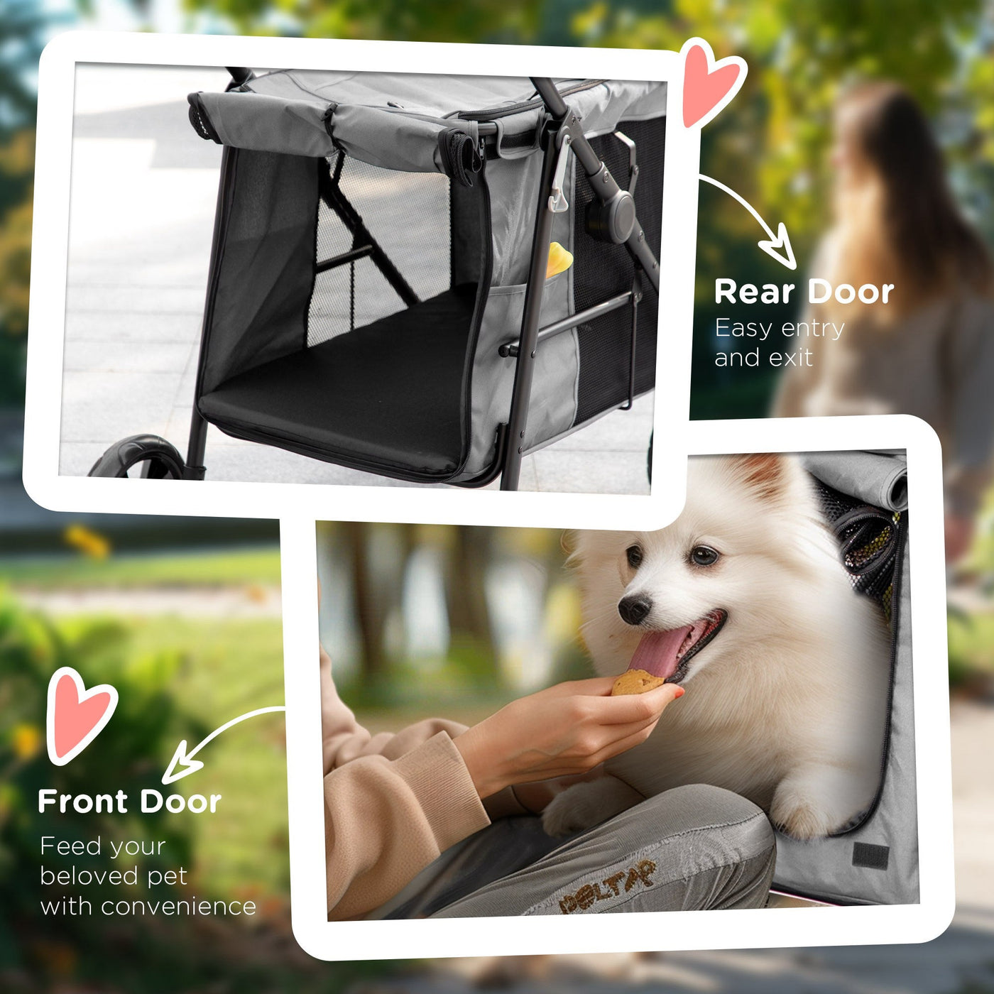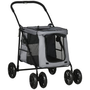 PawHut Dog Pram Dog Stroller 4 Wheels Pet Pushchair with Rolling Door, Cushion, Safety Leashes, for Small and Medium Dogs, Grey - Grey