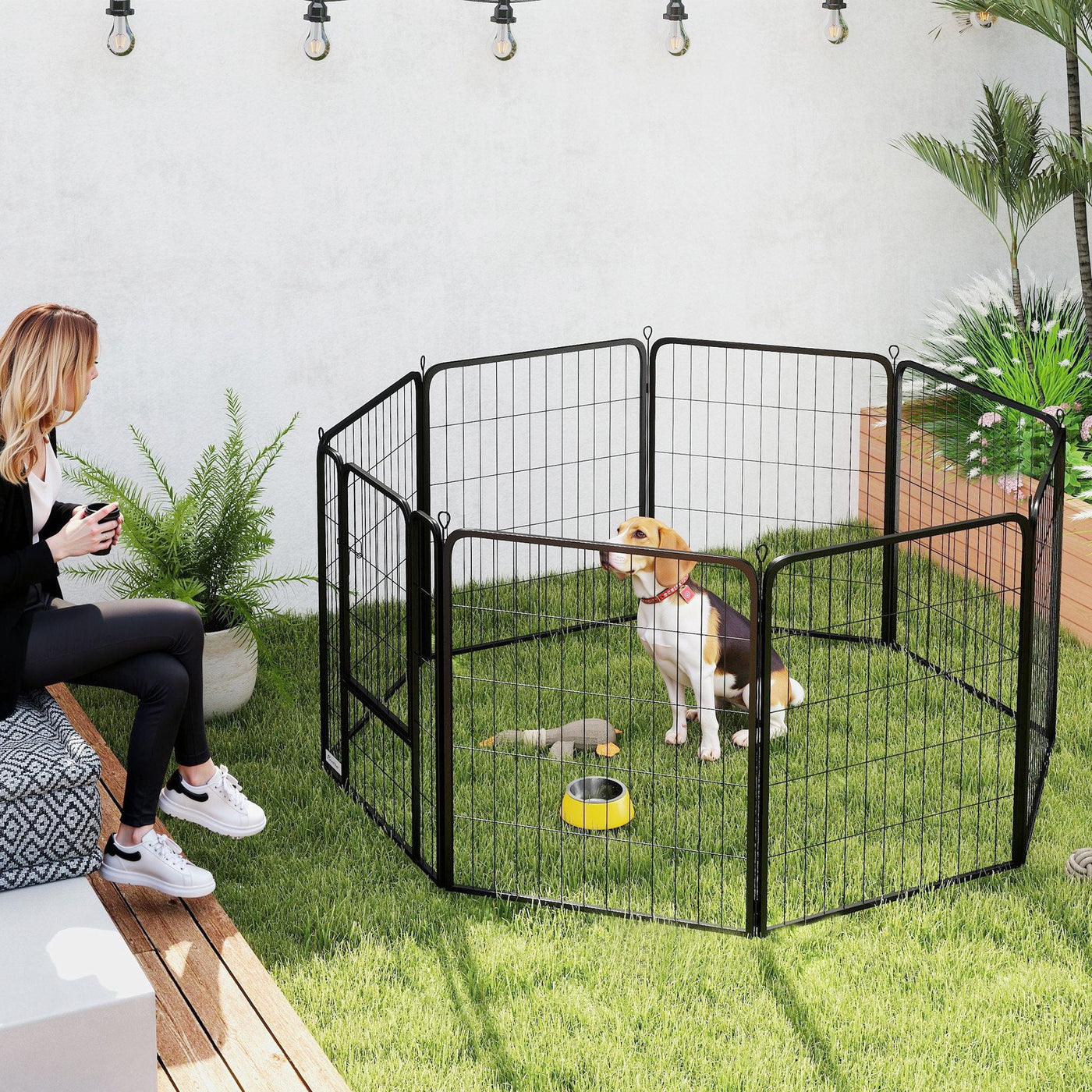 PawHut Eight-Panel Dog Playpen with Door, for Large Dogs, Indoors, Outdoors, 80cm Tall, Black - Black