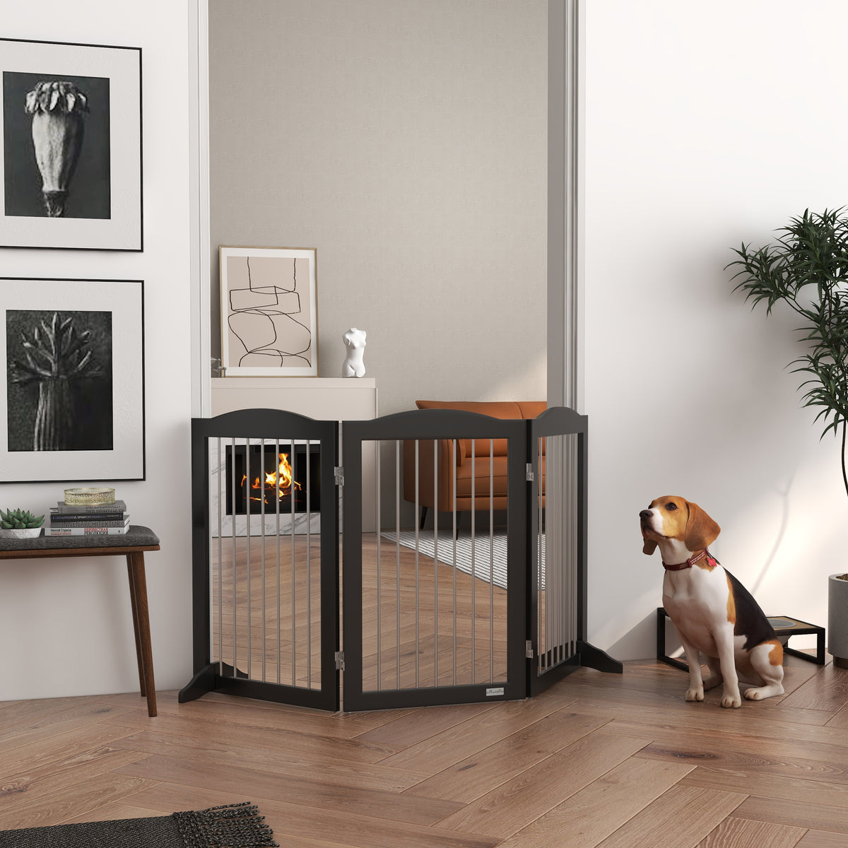 PawHut Foldable Dog Gate, Freestanding Pet Gate, with Two Support Feet, for Staircases, Hallways, Doorways - Black - Black
