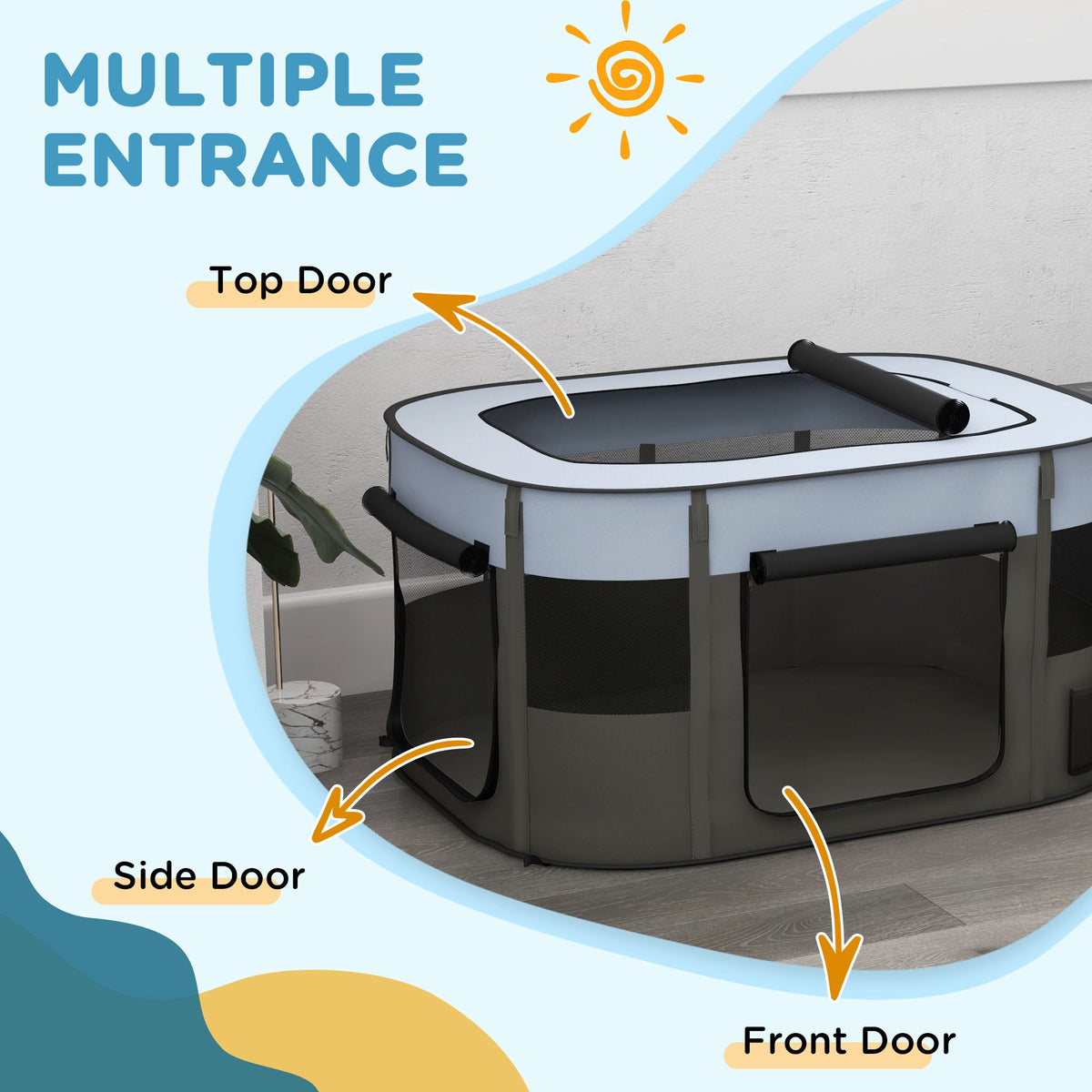 PawHut Foldable Dog Pen with Storage Bag for Indoor/Outdoor Use, Portable Pet playpen, with Ground Stakes - Grey - Grey