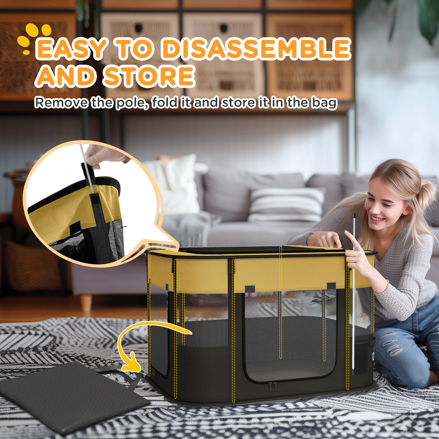 PawHut Foldable Dog Pen with Storage Bag for Indoor/Outdoor Use, Portable Pet playpen, with Ground Stakes - Yellow - Yellow