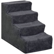 PawHut Four-Step Dog Stairs, with Washable Plush Cover, for High Bed Sofa, Dog Stairs for Small Dog and Cat - Dark Grey - Dark Grey