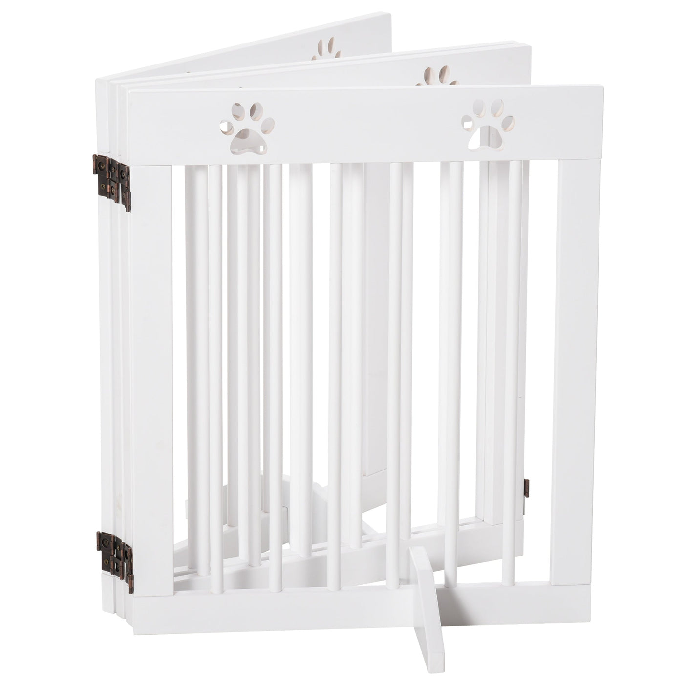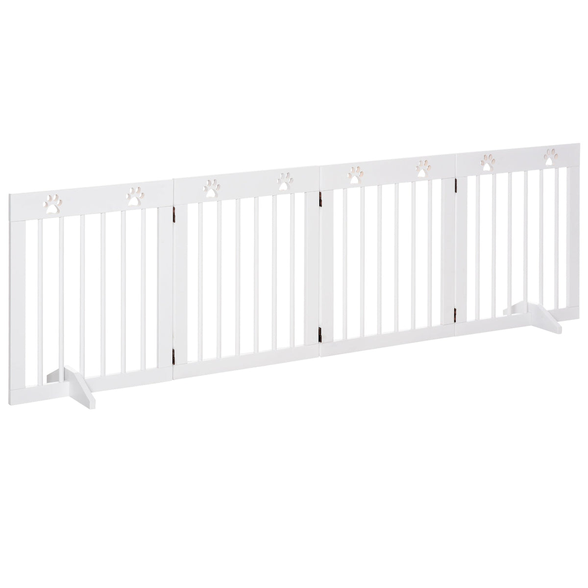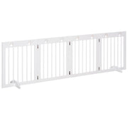 PawHut Freestanding Pet Gate 4 Panel Wooden Dog Barrier Folding Safety Fence with Support Feet up to 204cm Long 61cm Tall for Doorway Stairs White - White