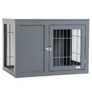 PawHut Furniture Style Dog Crate for Small and Medium Dogs, End Table Pet Cage with Two Lockable Doors - Grey - Grey