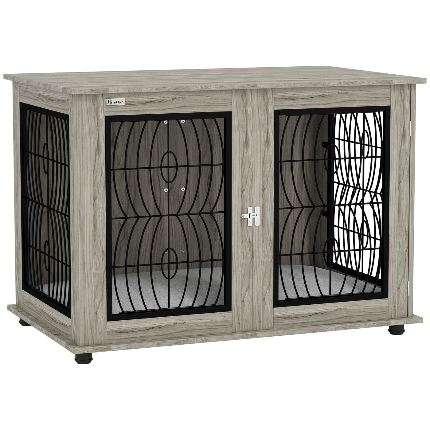 PawHut Indoor Dog Crate Furniture End Table with Soft Washable Cushion, Lockable Front Door, for Extra Large Dogs - Grey - Grey