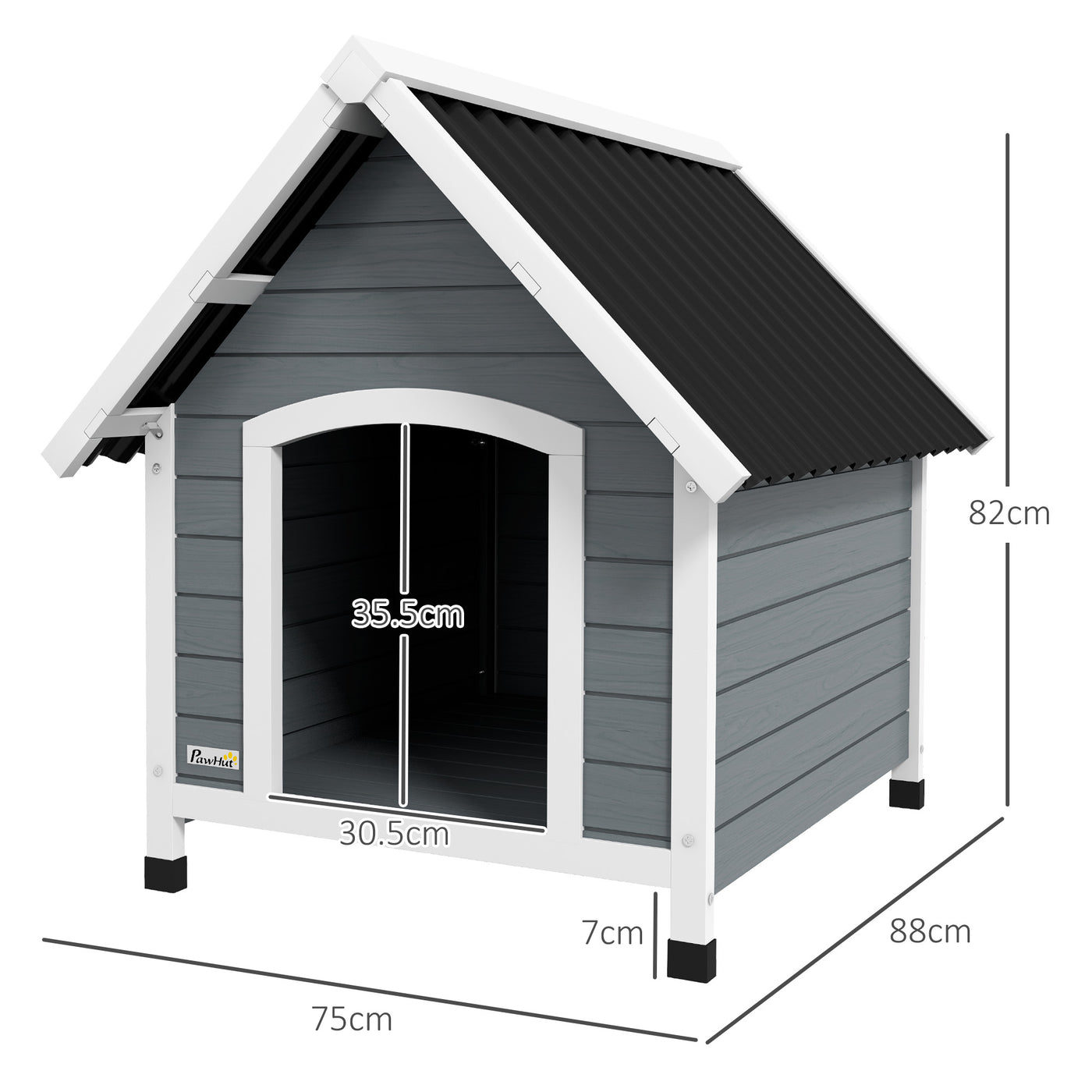 PawHut Outdoor Dog Kennel, Wooden Dog House, with Removable Floor, Anti-Corrosion Wood, for Medium Dogs, 82H x 75W x 88Dcm - Grey