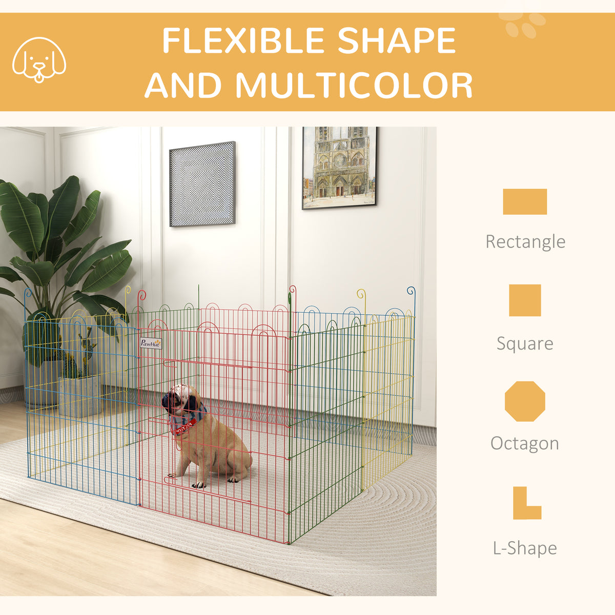 PawHut Pet Playpen Crate, with Eight Panels, Door, for Indoors and Outdoors, 60H x 156cm - Multi Colour