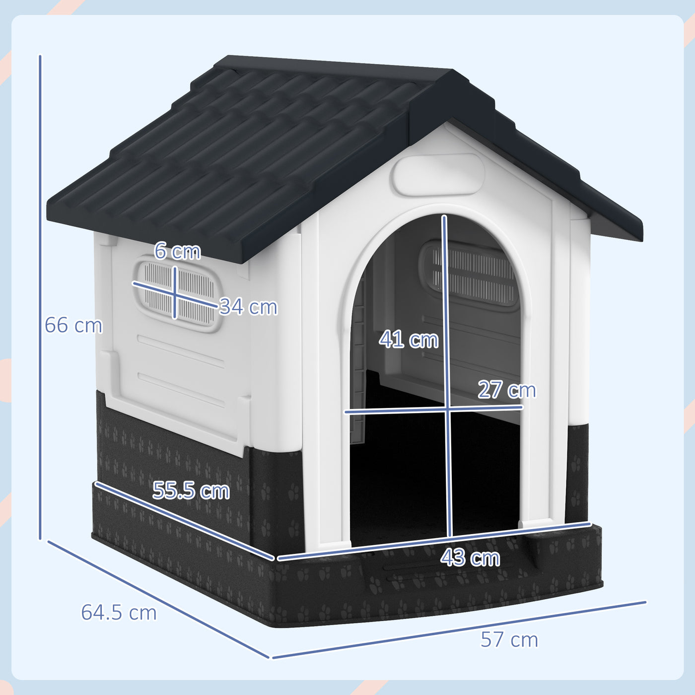 PawHut Plastic Dog Kennel with Windows, for Garden Patio, Miniature Dogs, 64.5 x 57 x 66cm - Grey - Grey