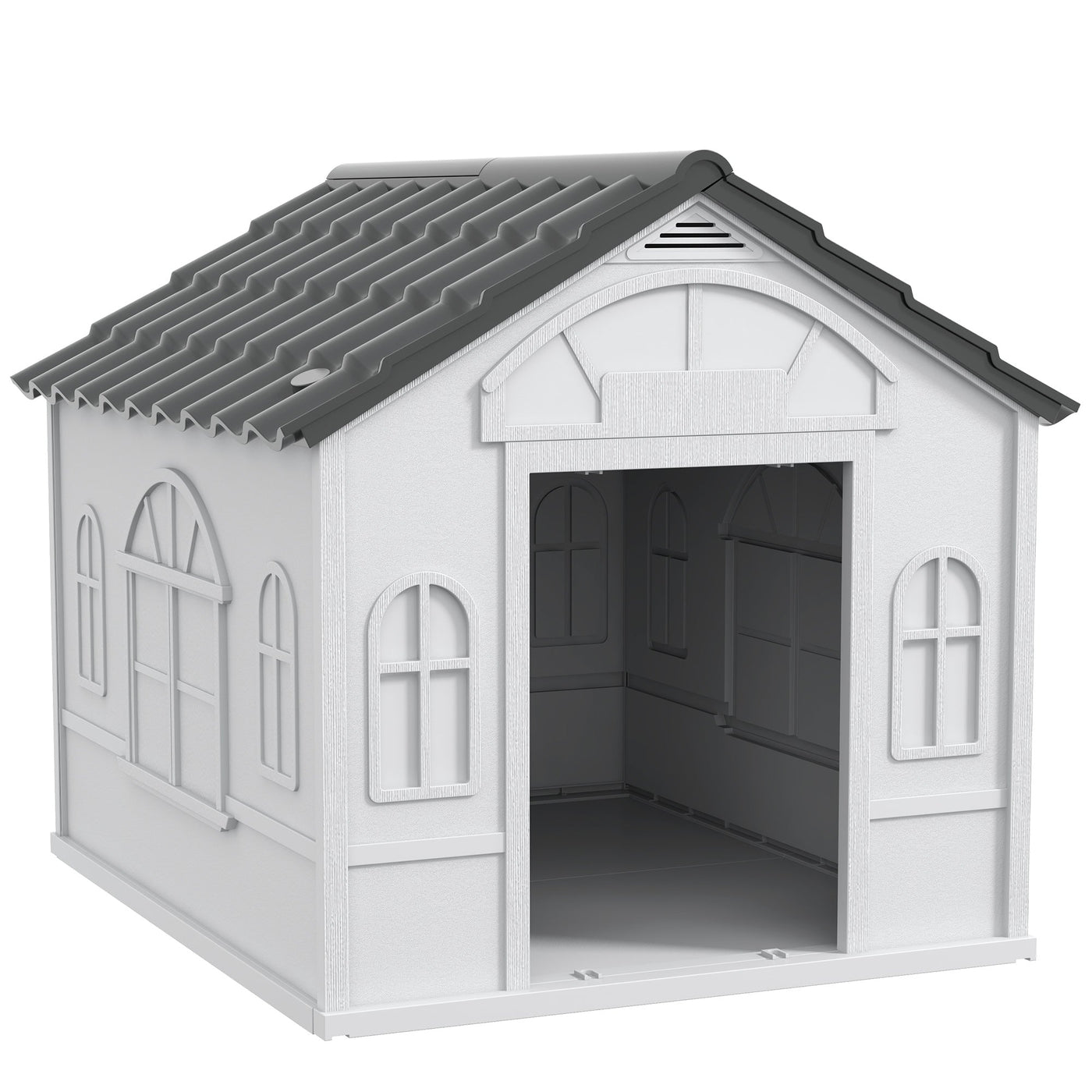 PawHut Plastic Weather-Resistant Dog House, for Indoors and Outdoors, Large Dogs - Grey - Grey