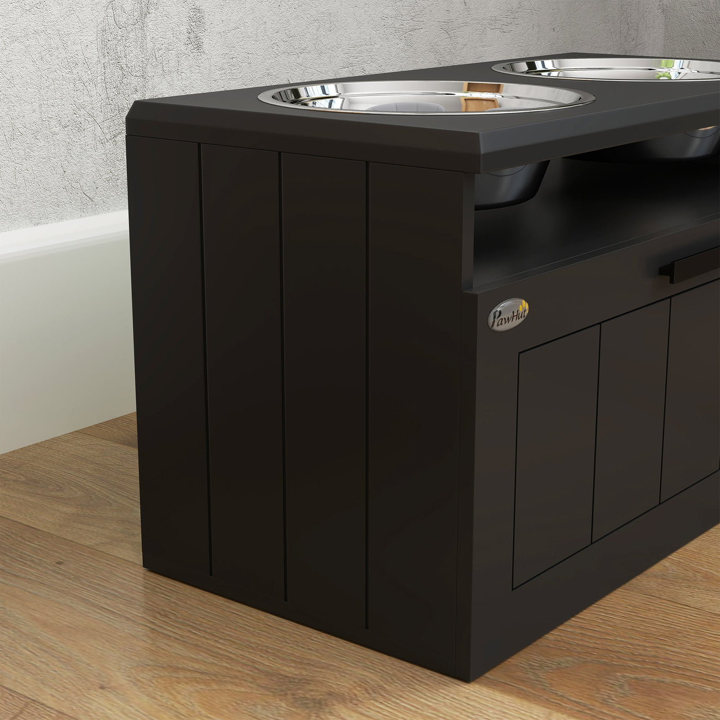 PawHut Raised Dog Bowl with Slow Feeder, Two Stainless Steel Dog Bowls, Drawer, for Large and Extra Large Dogs, Black - Black