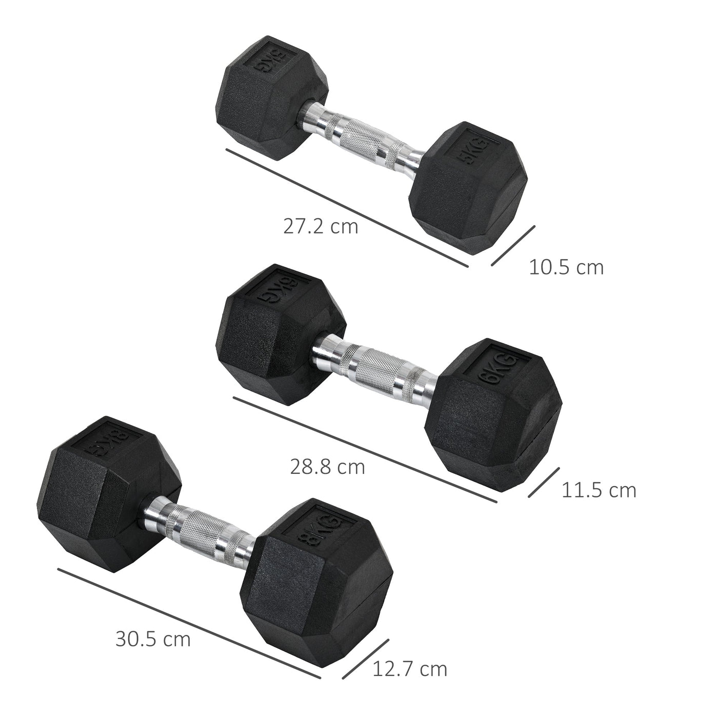 HOMCOM Rubber Dumbbell Set Sports Hex Weight Sets Home Gym Fitness Lift Strength Training Exercise 2 x 5kg, 2 x 6kg, 2 x 8kg - Black