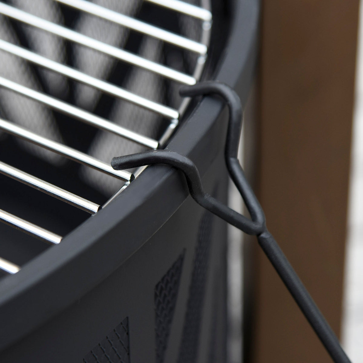 Outsunny Metal Large Firepit Bowl Outdoor 2-In-1 Round Fire Pit Brazier w/ Lid, BBQ Grill, Poker for Backyard, Camping, Bonfire, Wood Burning Stove, 78 x 78 x 60cm, Black - Black