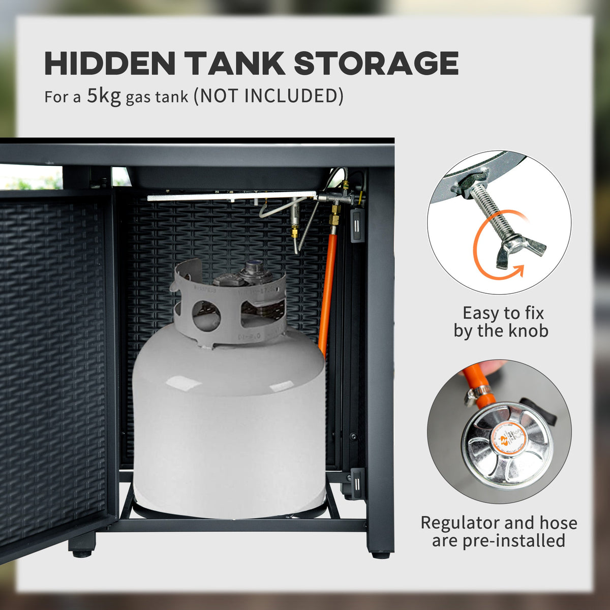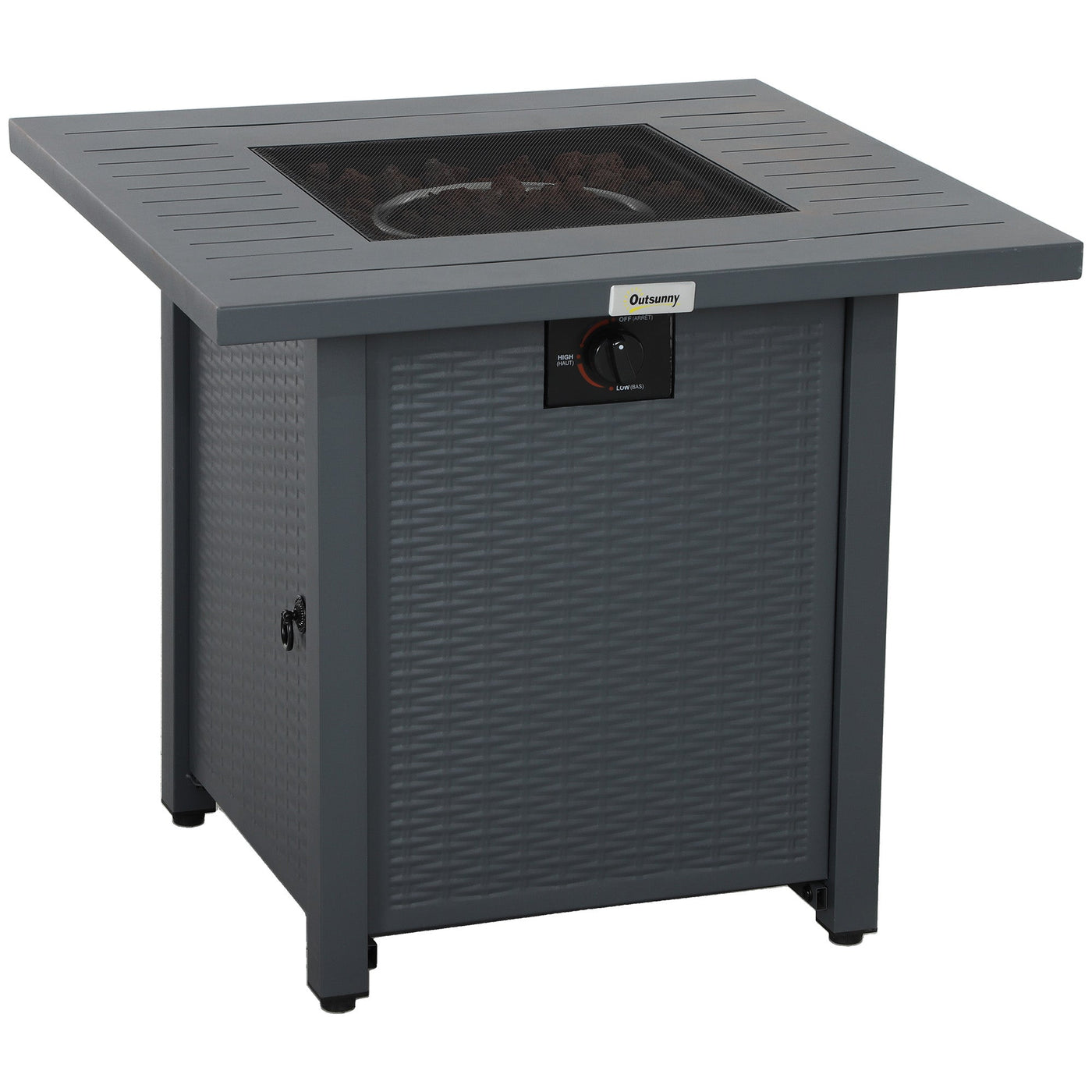 Outsunny Rattan-style Propane Gas Fire Pit Table with 40,000 BTU Burner, Square Smokeless Firepit Patio Heater with Thermocouple, Lava Rocks, Waterproof Cover, Spark Guard and Lid, Grey - Grey