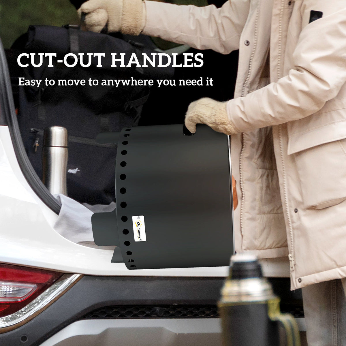 Sleek, stylish and super helpful: say hello to this Outsunny firepit. Made from powder-coated steel with dark grey finish, it's tough and high heat resistant. It has a smokeless secondary combustion system: oxygen enters from below and channels between the walls for a strong and powerful burn, whilst burning the fuel down to ash for a smokeless experience - enjoy the heat like never before!