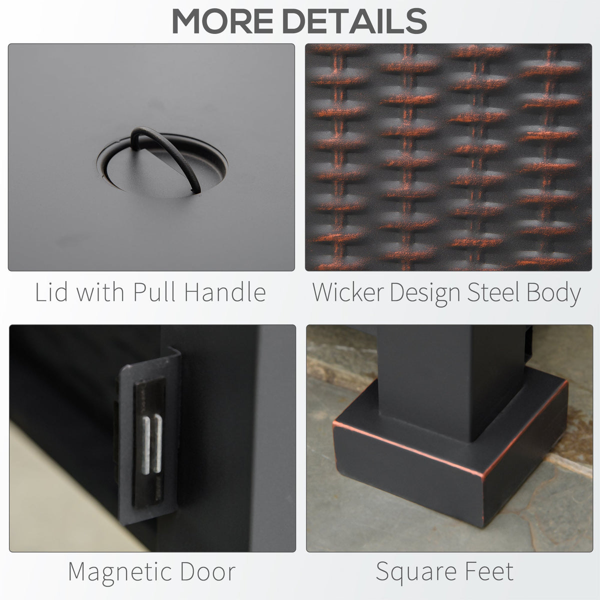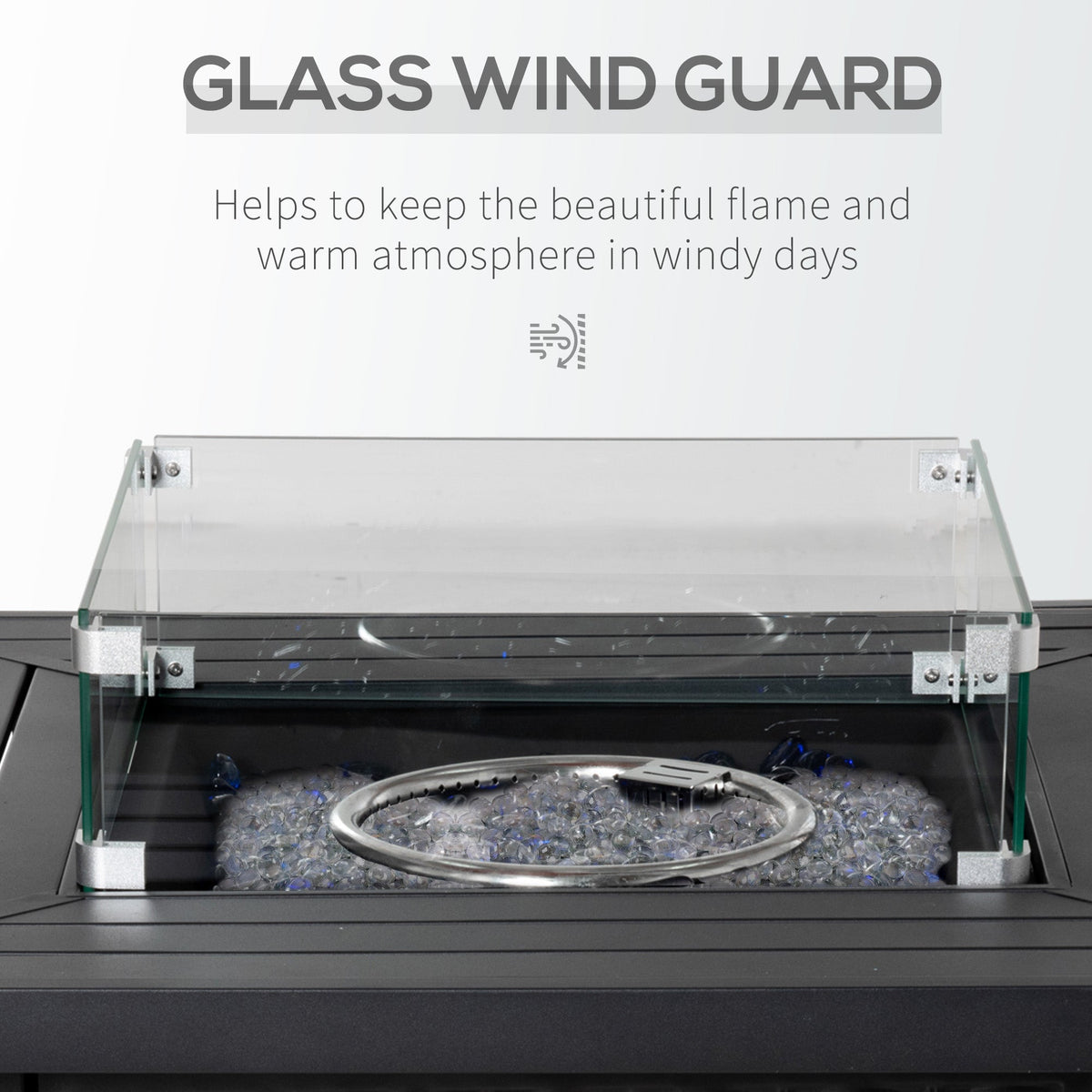 Outsunny Square Propane Gas Fire Pit Table, 50000 BTU Rattan Smokeless Firepit Patio Heater with Glass Screen, Glass Beads and Lid, 81cm x 81cm x 64cm, Black - Black