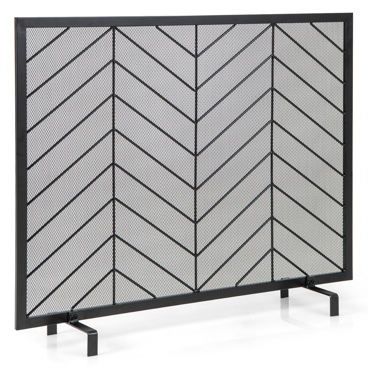 Single Panel Fireplace Screen with Detachable Support Feet and Metal Fame-Black