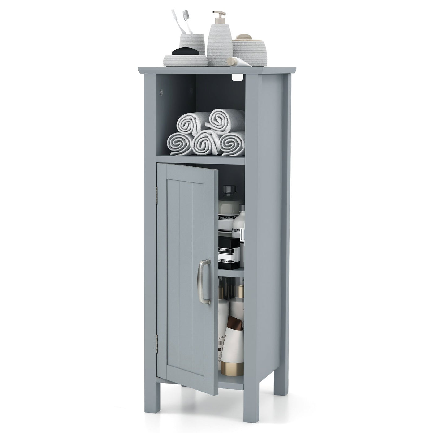 Freestanding Narrow Bathroom Storage Organizer Rack Stand with Door and Adjustable Shelf-Grey