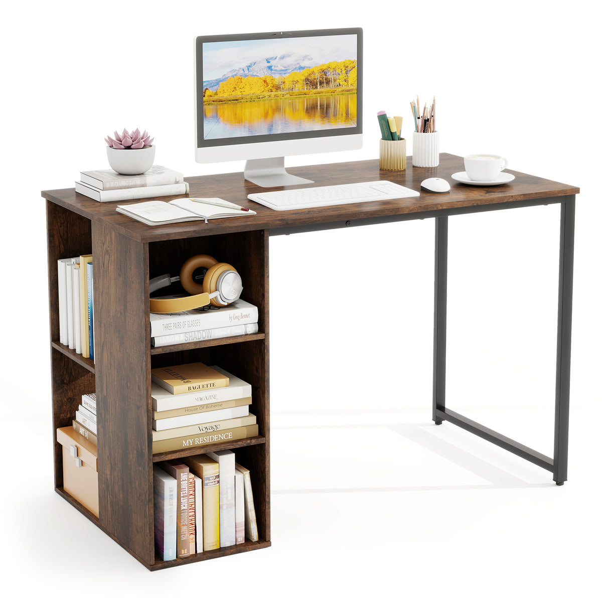 115 CM Computer Desk with 5 Storage Compartments-Brown