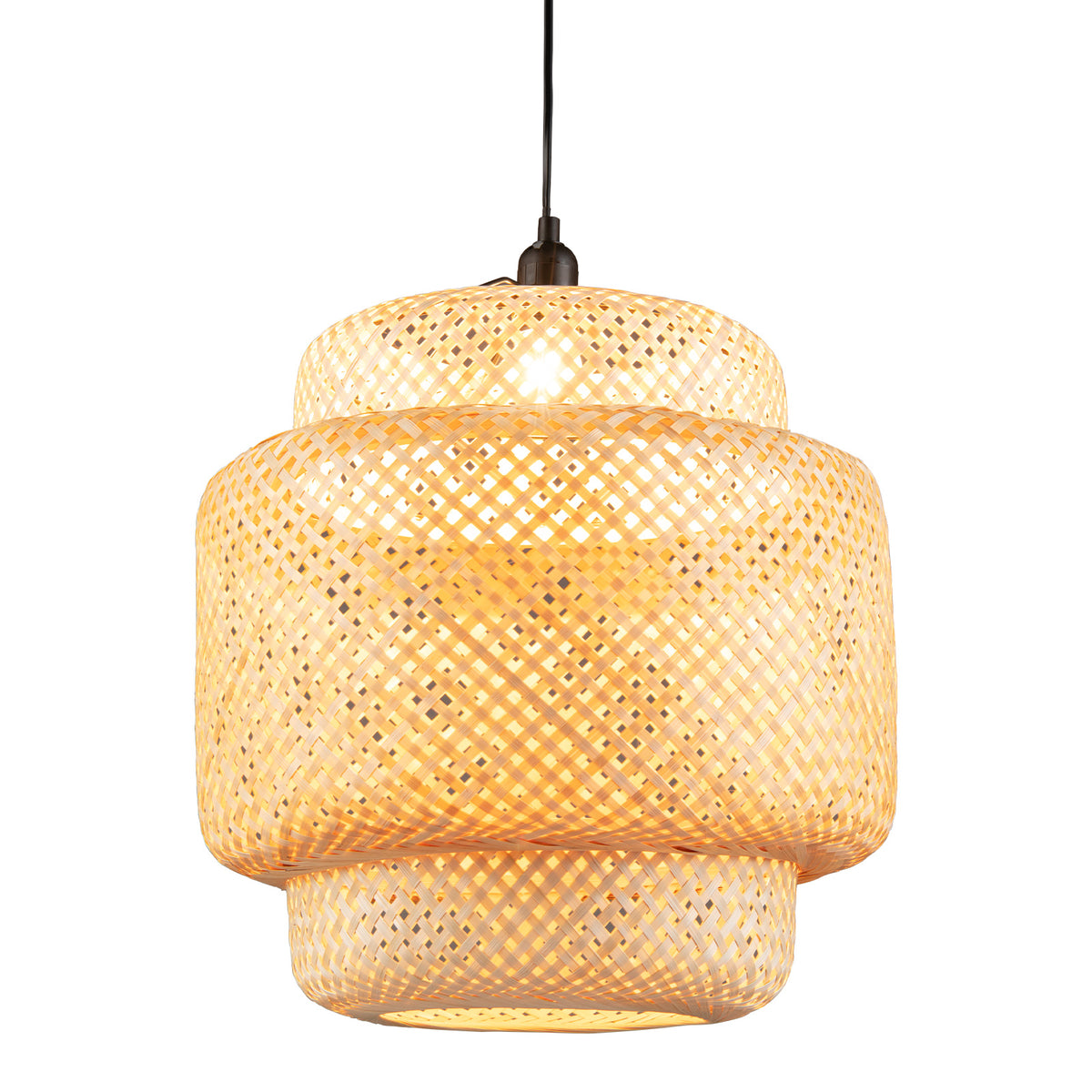 Bamboo Pendant Light with Lampshade and Plug in Cord