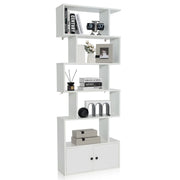Industrial S-Shaped 5-tier Bookcase with Cabinet-White