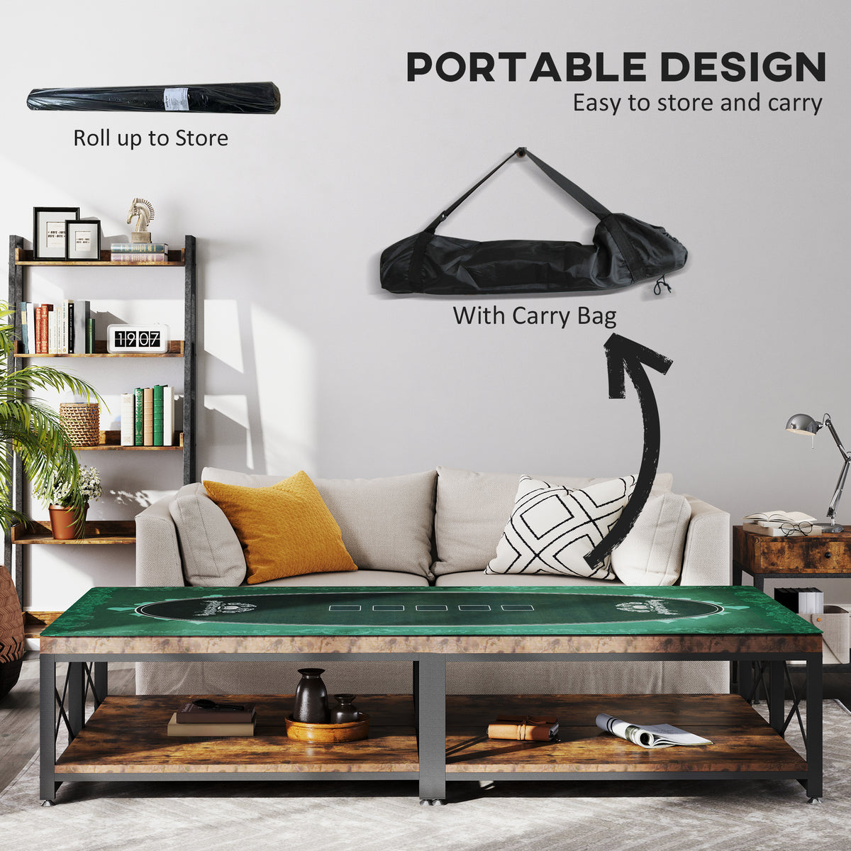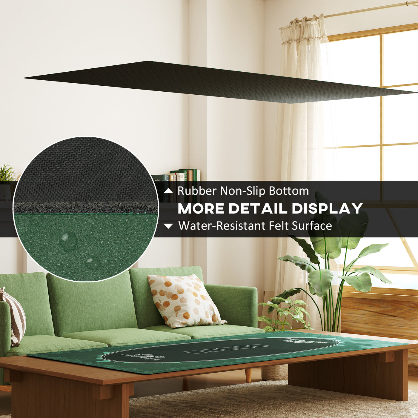 Transform any table into a competitive game of poker with this SPORTNOW poker mat, suitable for 12 players. Made from wear-resistant rubber, its non-slip design ensures it stays firmly on the table. Enjoy the soft, water-resistant felt surface, which can be effortlessly rolled up and stored in its handy carry bag, ready for a game wherever and whenever.