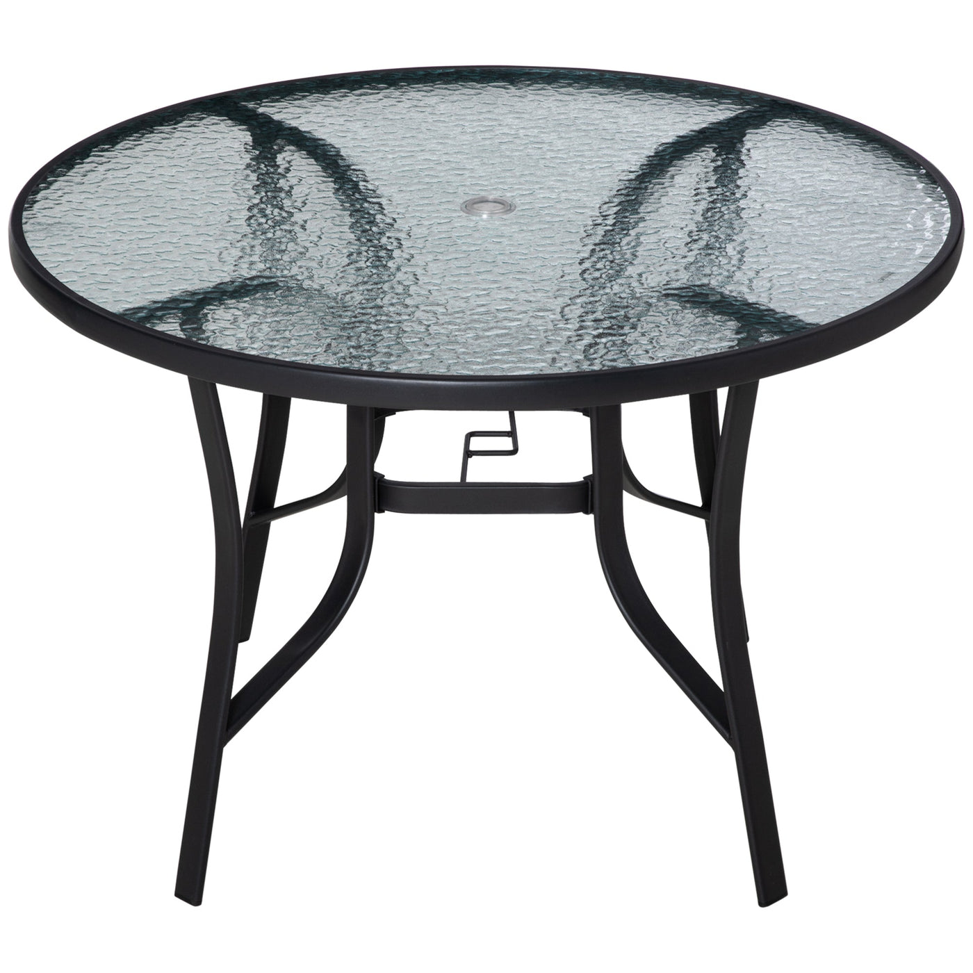 Outsunny 106cm Round Garden Dining Table with Parasol Hole Tempered Glass Top Steel Frame - Black