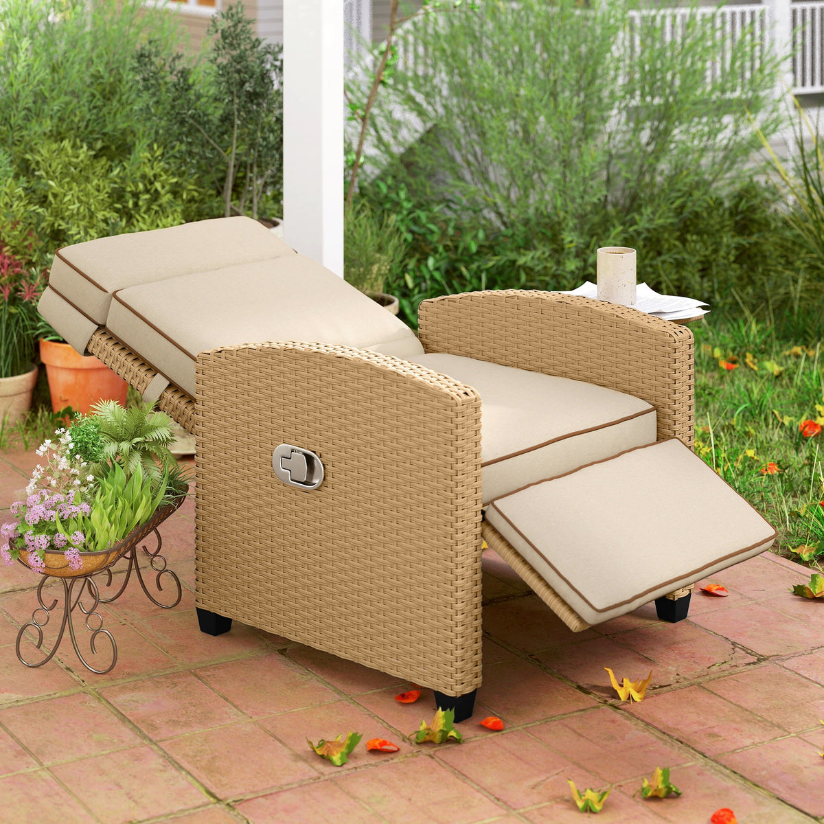 Outsunny 145° Reclining Rattan Armchair, with Footrest - Khaki/Beige - Khaki, Beige