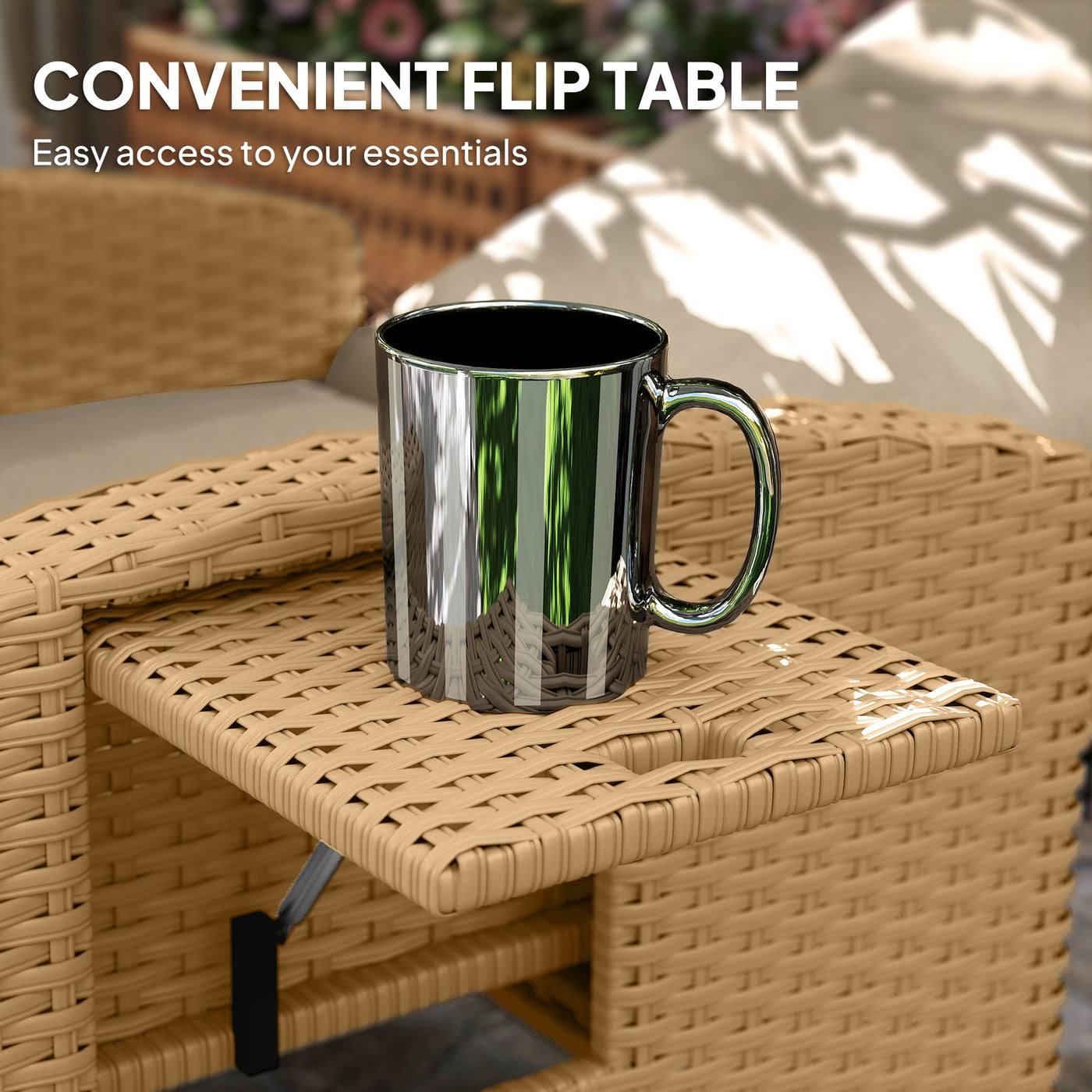Outsunny 145° Reclining Rattan Armchair, with Footrest - Khaki/Beige