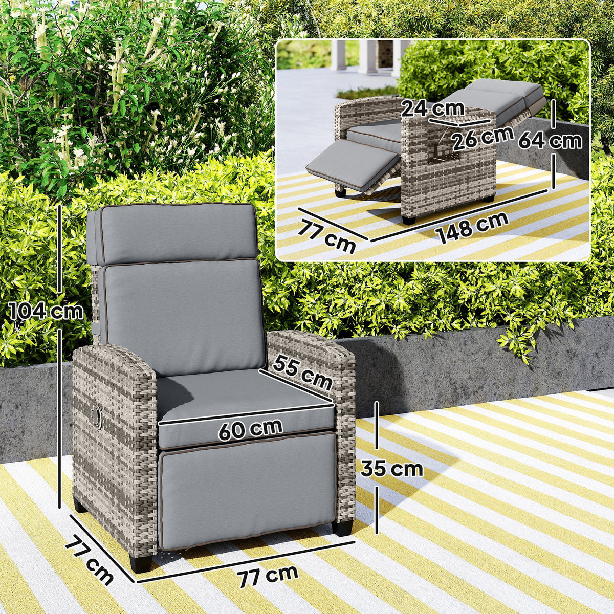 Outsunny 145° Reclining Rattan Armchair, with Footrest - Mixed Grey/Grey - Mixed Grey, Grey