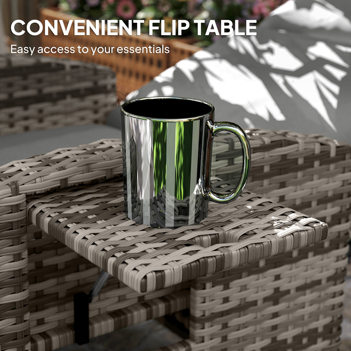 Forever on-trend rattan style, at an angle you want to relax - thanks to this Outsunny rattan recliner chair. The back reclines to a maximum 145° - paired with the manual footrest for full body relaxation. The wide seat is fitted with a padded seat cushion for plenty of comfort. It's complete with a flip-up side tray to keep items right next to you.