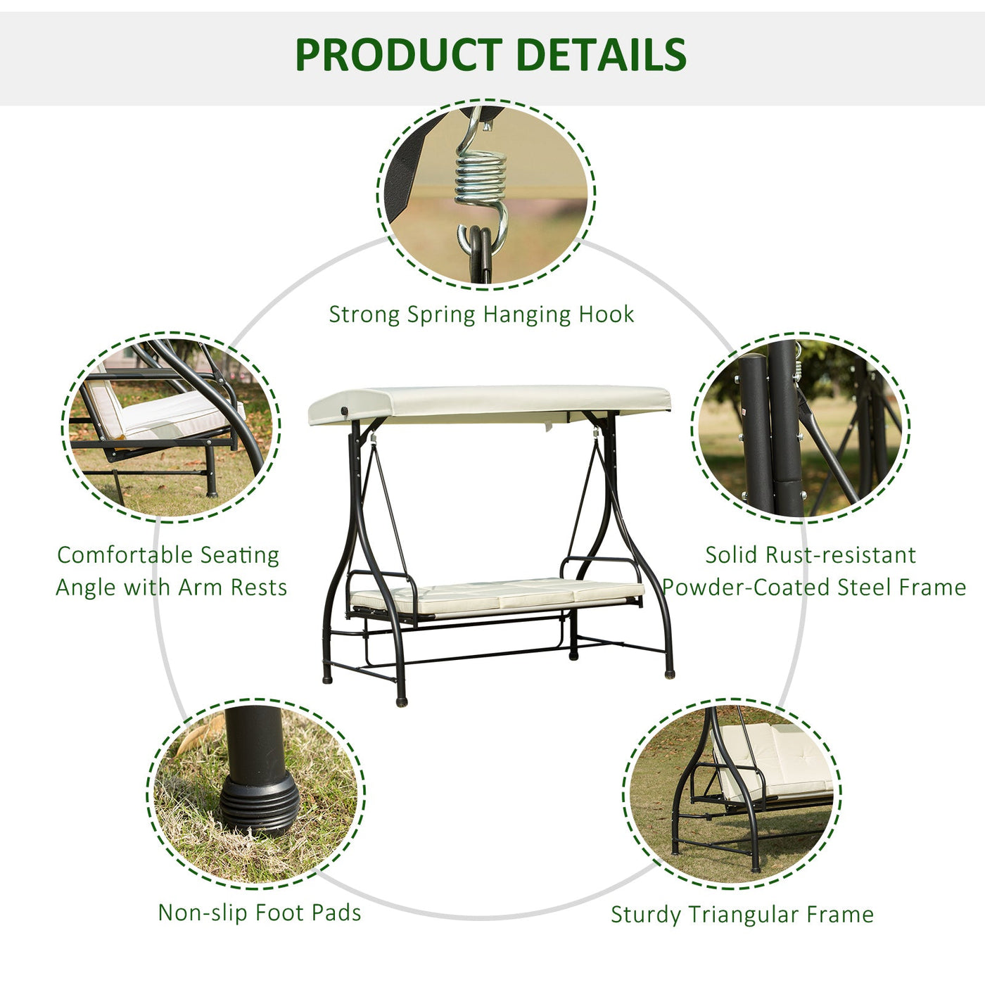 Outsunny 196L x 117D x 178H cm Swing Chair-Beige/Black - Cream