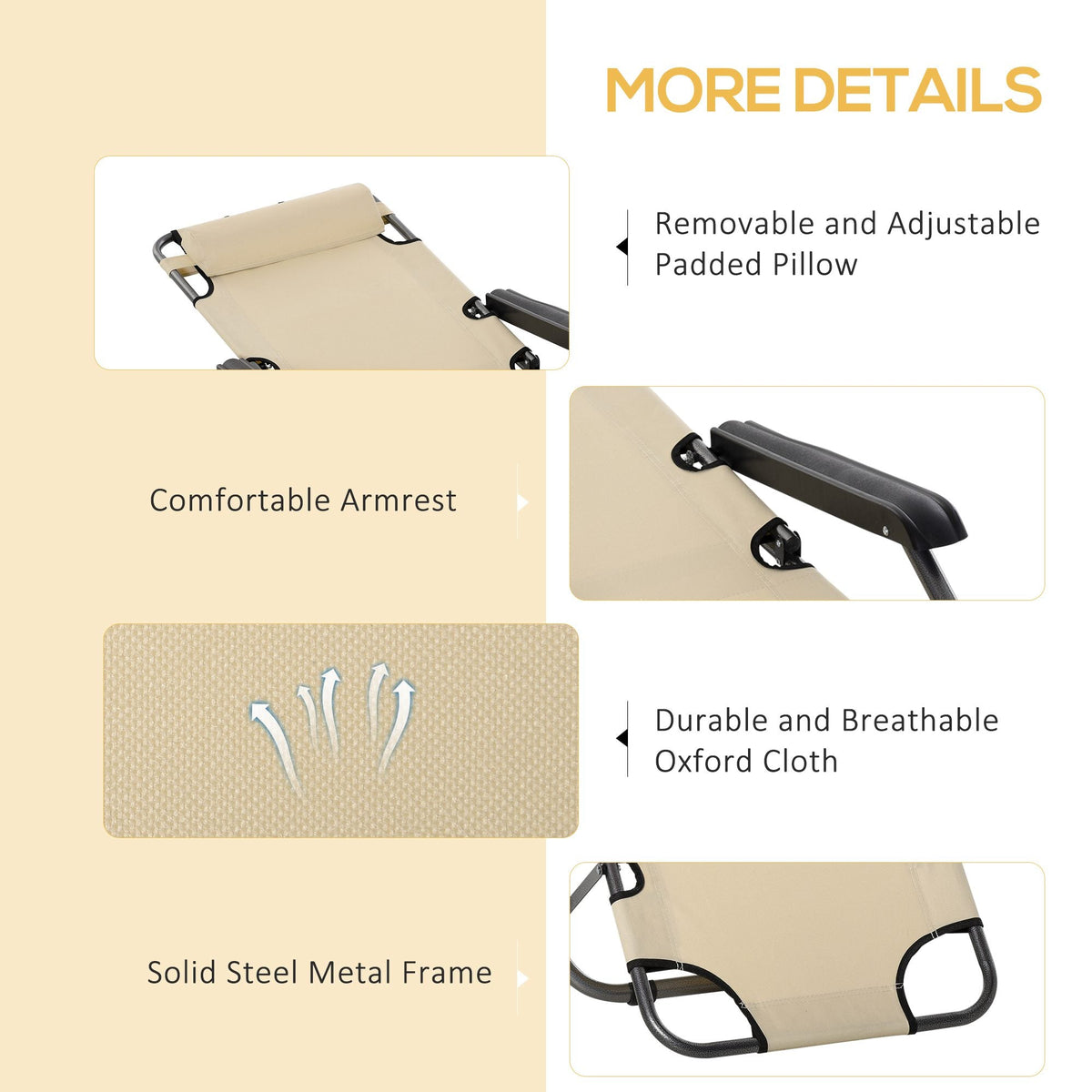 Take comfort with you anywhere to enjoy the summer heat with this Outsunny reclining garden chairs. Using a steel frame which is tough, the folding sun lounger is made into a long design, giving you lots of room to unwind. The garden loungers can be adjusted to two levels, meaning you can pick the correct back angle for you, with a pillow adding extra comfort. Foldable for easy carrying, this reclining sun lounger comes fully assembled, meaning once it arrives, you can start enjoying it.