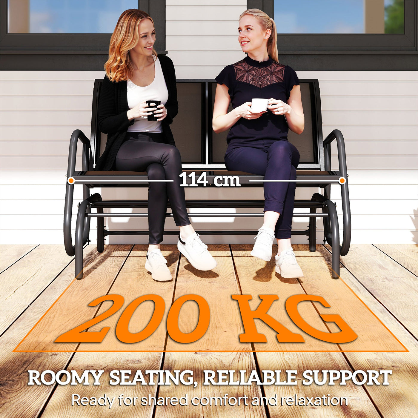 Outsunny 2-Person Outdoor Glider Bench Patio Double Swing Gliding Chair Loveseat w/Power Coated Steel Frame for Garden Patio Porch, Black - Black