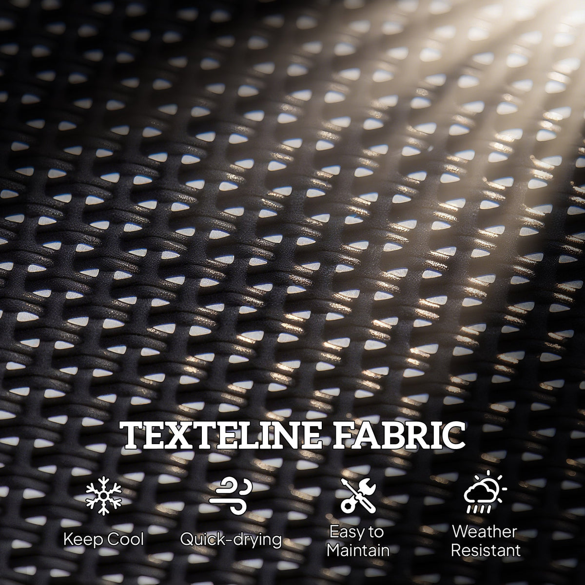 Made of weather-resistant fabric, the mesh seat and backrest of this glider bench keeps you comfortable. The curved and smooth rocker arms support you as you sit. Metal frame of the garden rocker is tough, and it's crafted into a gliding shape for it to move forwards and backwards gently. Enjoy a relaxing day in the sun or shade with our love seats for garden.