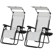 Outsunny 2 Piece Foldable Reclining Garden Chair with Headrest, Zero Gravity Deck Sun Lounger Seat Chair with Footrest, Armrest, Cup Holder & Canopy Shade, White - White